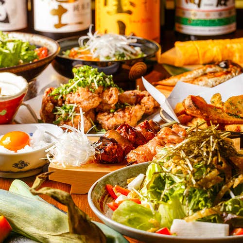 看板メニューの肉料理は、炭火でじっくり焼き上げた焼鳥やジューシーなローストビーフ、香ばしいベーコン・ソーセージの盛り合わせなど多彩に揃い、斬新な肉寿司や馬刺し、鮮度抜群の刺身や焼魚も楽しめま...